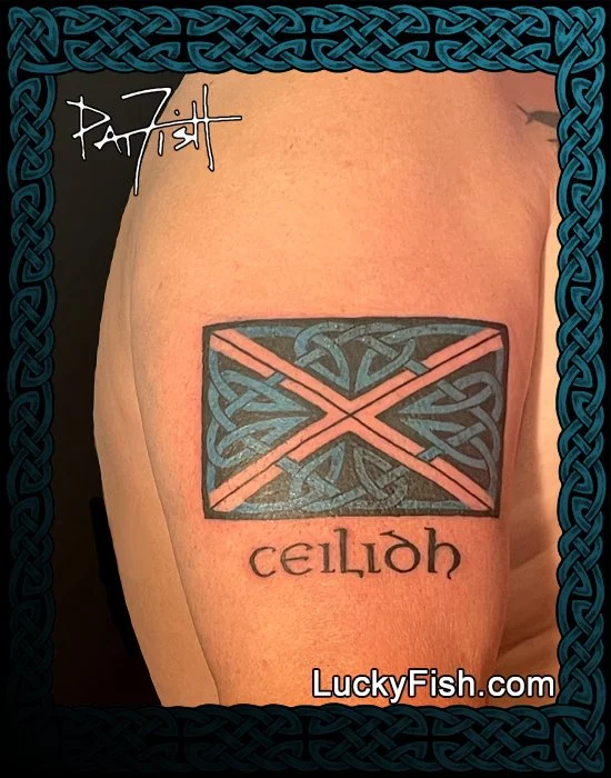Today is St Andrew's Day in Scotland, and this is my interpretation of the St. Andrew's cross flag of the Kingdom of Scotland, known as the Saltire, here represented with a clever Celtic knotwork pattern.