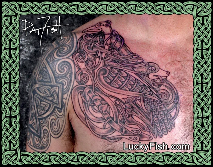 Check out the other side here: http://www.luckyfish.com/blog/celtic-zoomorphic-chest-plate-tattoo-left-side