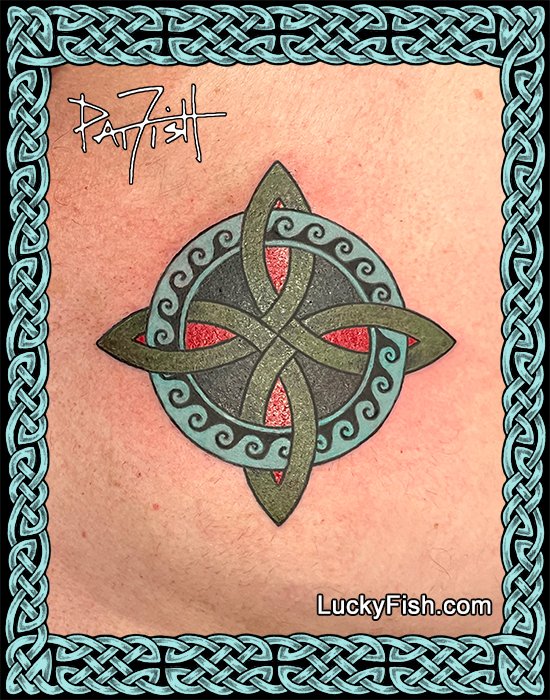 Mariners' Mark Wave Tattoo Design December 02, 2025 A mariners' mark, a customized classic Celtic knot for a man who has spent his life on the sea. He asked for something with the feel of a compass and incorporating water.