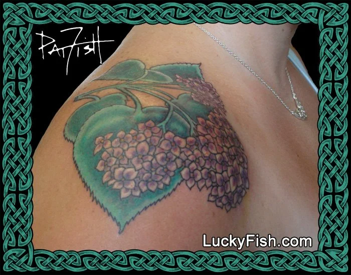 OK, back to my ongoing mission of embellishing our military with body armor. This young Marine officer had the dagger and triquetra done several years ago by someone in South Carolina, so today we expanded it to a 1/4 sleeve that now includes continuous knotwork that forms a full band underneath to connect seamlessly on his inner arm. Sharp eyes will be able to compare the yellow triquetra with the repaired green one...... in the original the weave does not follow over-under-over, as is necessary for the pattern not to unravel. Makes me crazy! Fortunately as part of today's custom background I was also able to rework the triquetra, shade it to hide the repairs, and give it a new color. NOT easy!