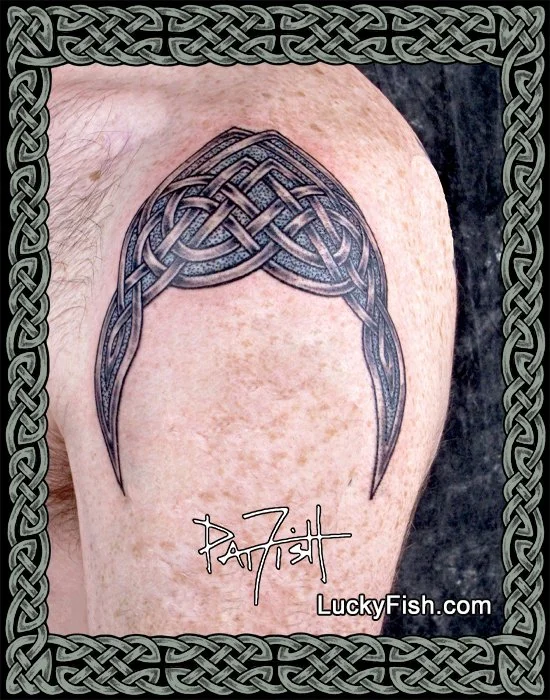 n epaulette of Celtic knot work created to cap the upper arm and extend a pre-existing tattoo up onto a shoulder (NOT shown). It can be used to top off any upper arm tattoo to extend a sleeve..