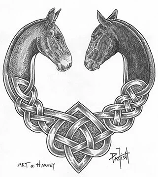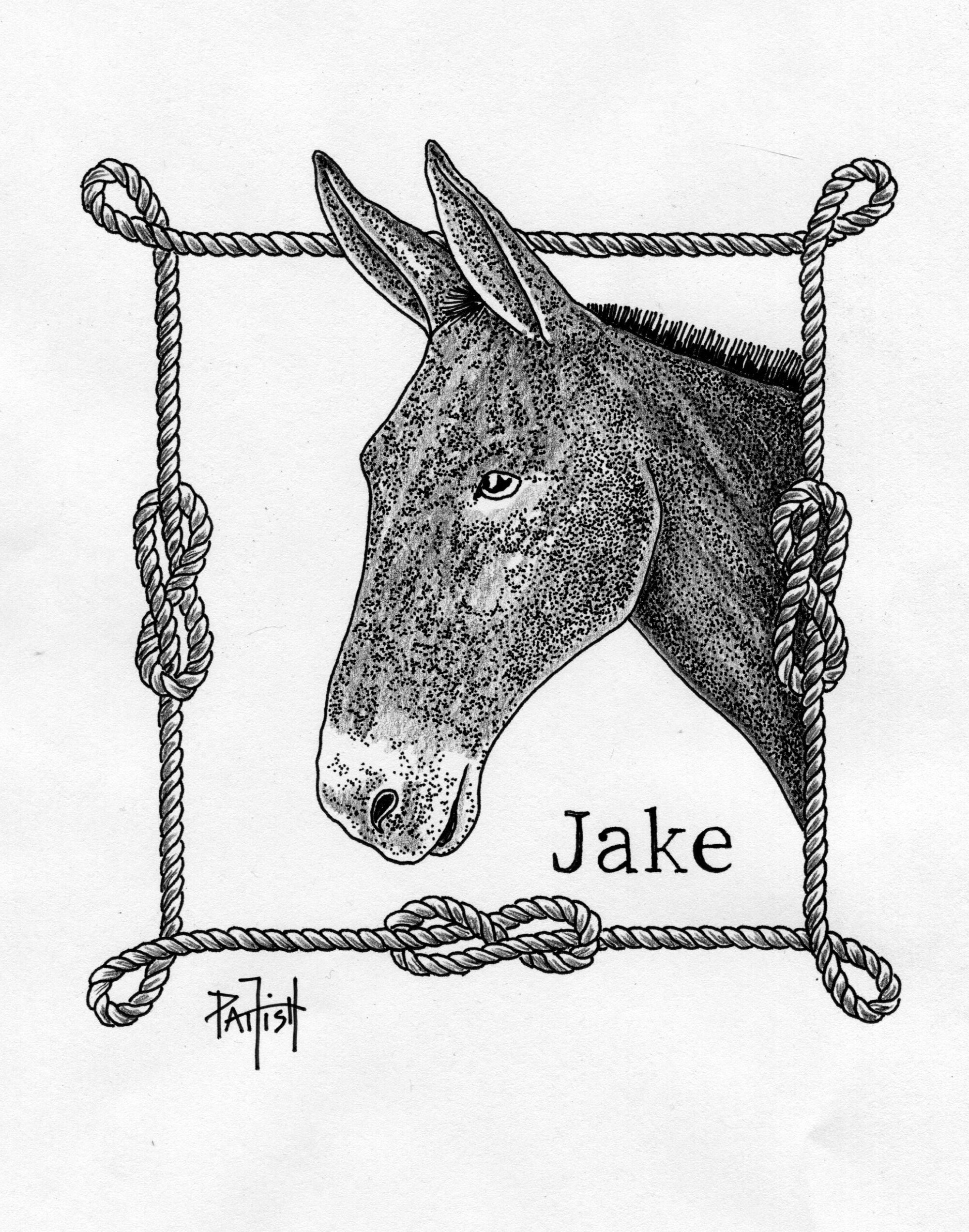 I am especially fond of mules, and participate in Facebook groups with other mule enthusiasts. One thing the mule community does is hold “Leg Up” auctions when someone falls on hard times and needs help. In 2018 I was gravely injured and spent a month in the hospital, and was given enough money by a charity auction and a “Go Fund Me” to pay the tattoo studio rent until I could return to work. I will be forever grateful. As a way to show gratitude I donate animal portraits to help auctions. These portraits were mostly done for the high bidders in online help auctions, and some on direct commission. I work from a photograph sent to me by the animal’s human, and enjoy trying to capture their unique spirit. I am available for commission for similar, either as pen and ink art or to be a tattoo.
